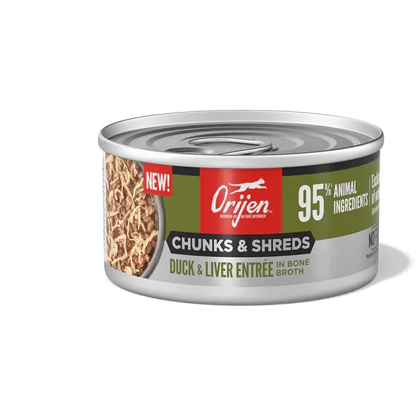 Orijen Chunks & Shreds Cat Wet Food - Duck & Duck Liver delivers biologically appropriate nutrition with high-quality animal proteins to support your cat’s natural dietary needs.