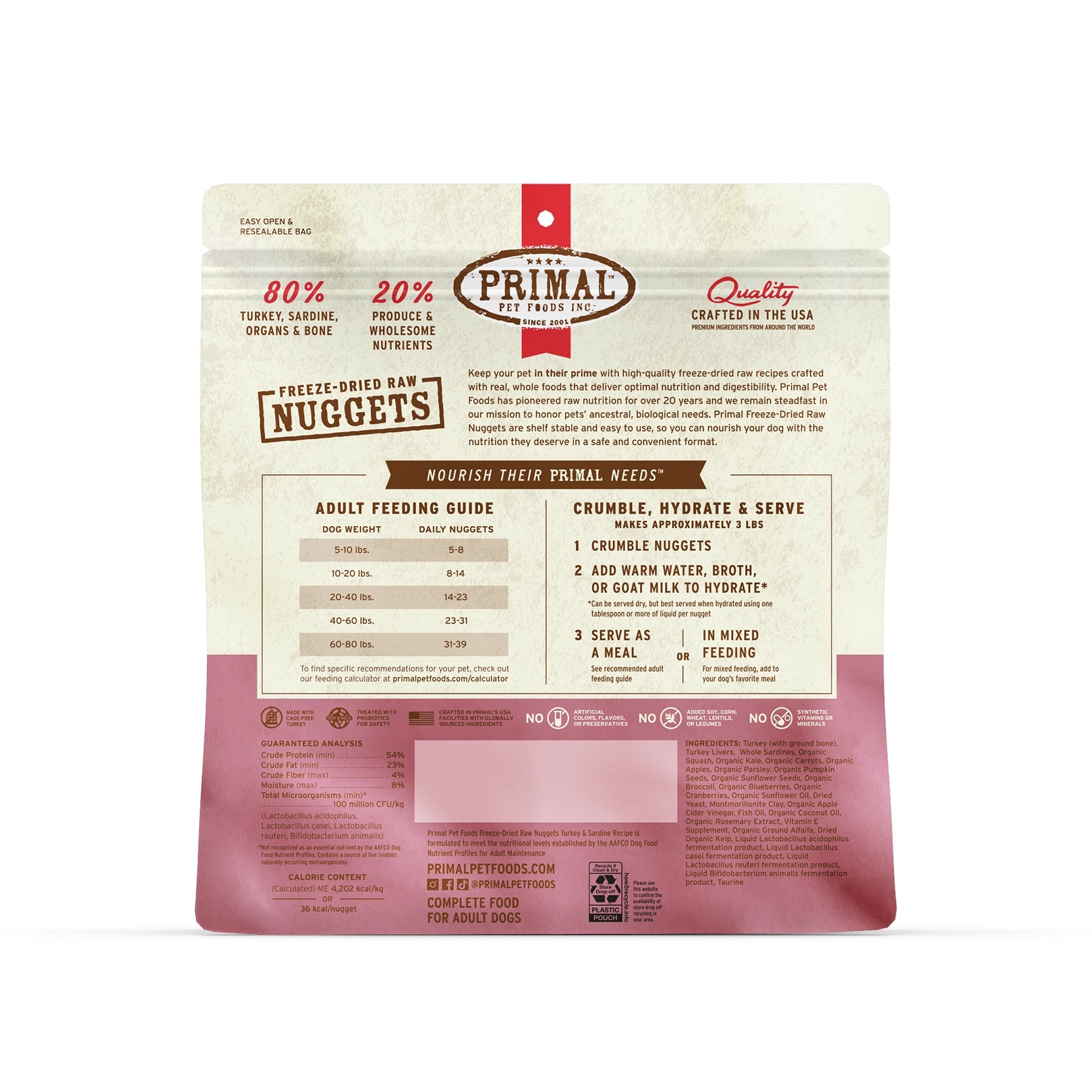 Primal - Freeze-Dried Nuggets Dog Food - Turkey & Sardine Formula