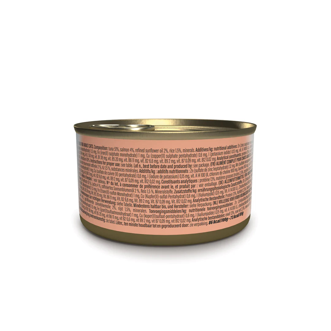 Real steamed tuna fillets with salmon in jelly for a natural and irresistible mix.