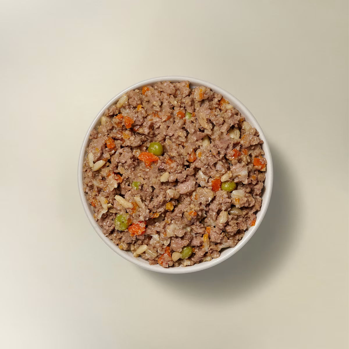Now Fresh Wet Dog Pouch - Chicken & Rice Dinner is made with laboratory-grown chicken to ensure consistent quality and taste.