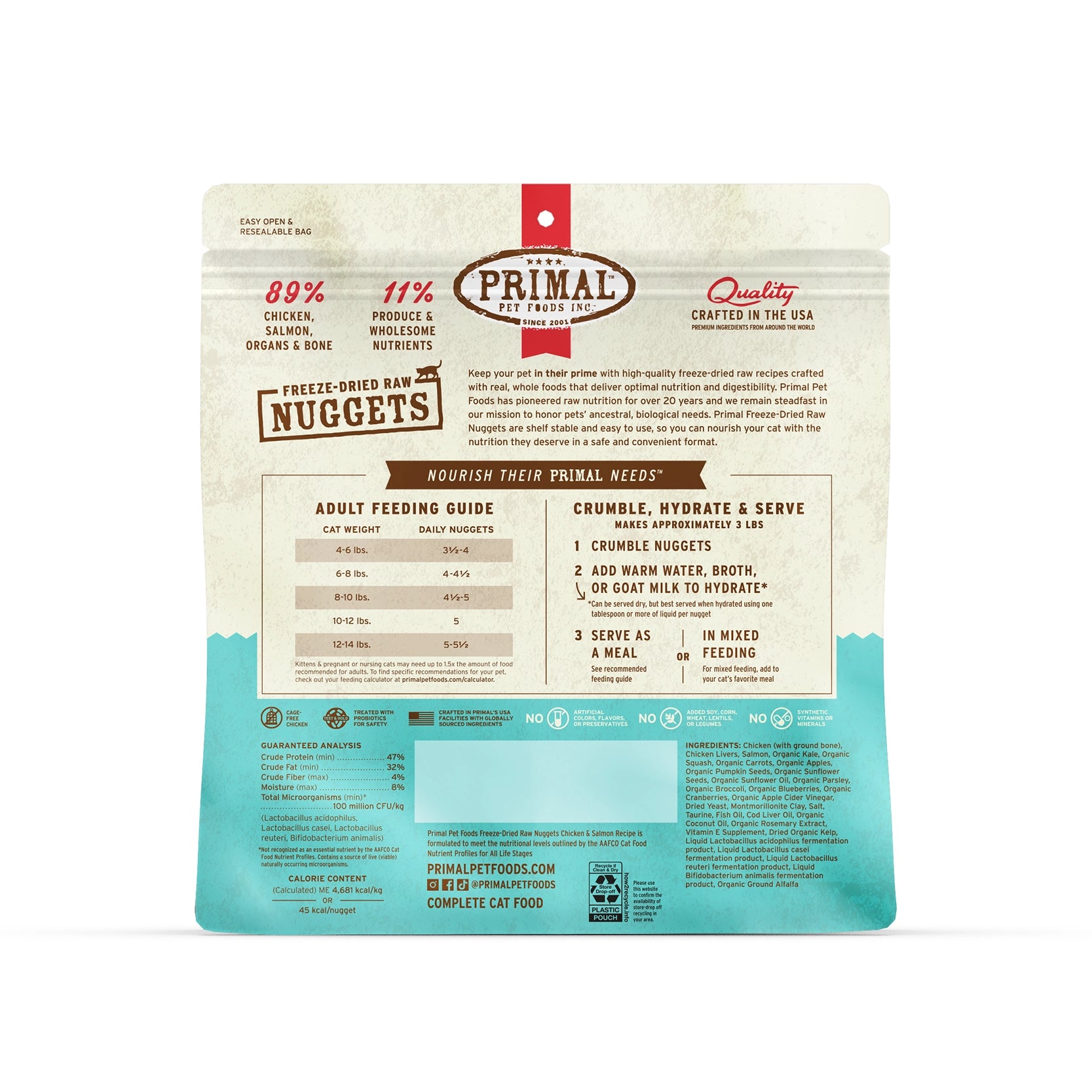 Primal - 凍乾生肉塊貓糧 - 雞肉及三文魚配方