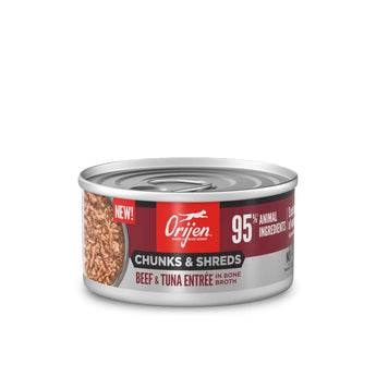 Nourish your cat with the texture and variety of raw animal ingredients packed into every can of ORIJEN™ Chunks & Shreds.