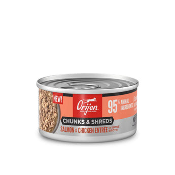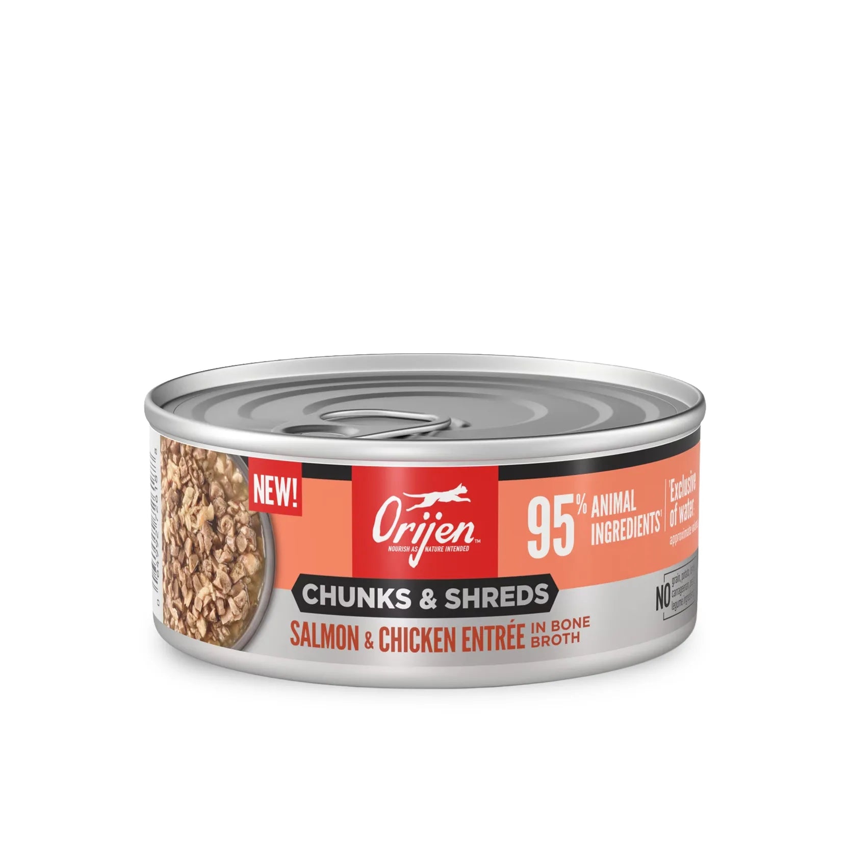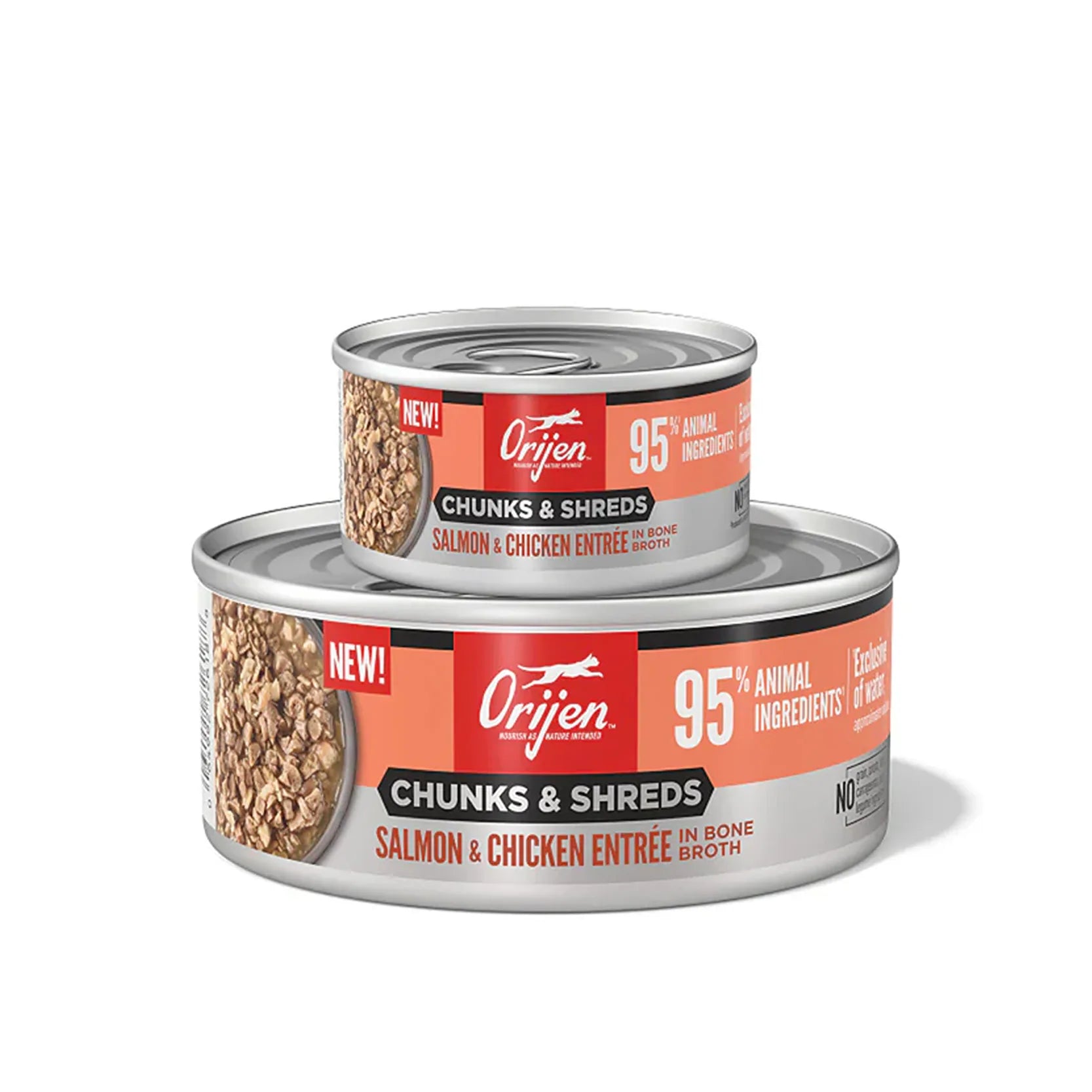 Nourish your cat with the texture and variety of raw animal ingredients packed into every can of ORIJEN™ Chunks & Shreds.